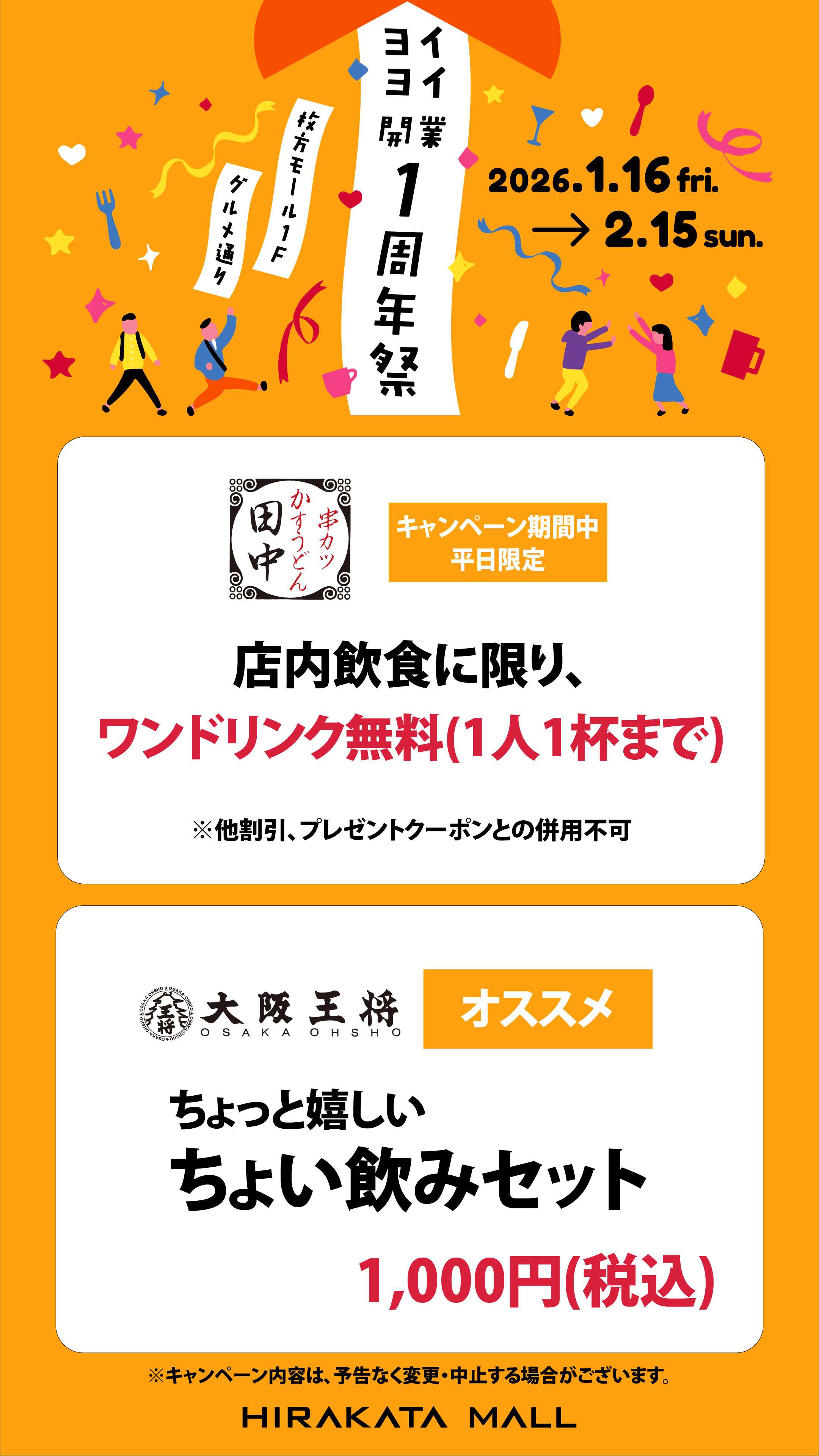 ヨイヨイ開業1周年記念! ヨイヨイ各店舗のお得なキャンペーン!
