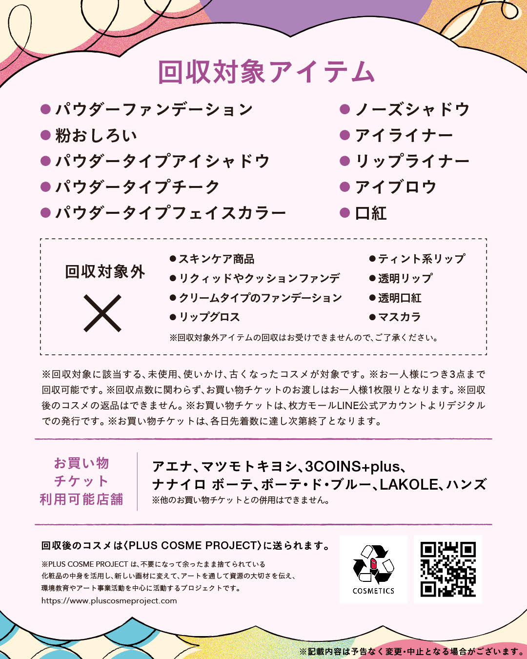 ●枚方モールLINE公式アカウント友だち限定!化粧品回収プロジェクト「コスメアップサイクル」