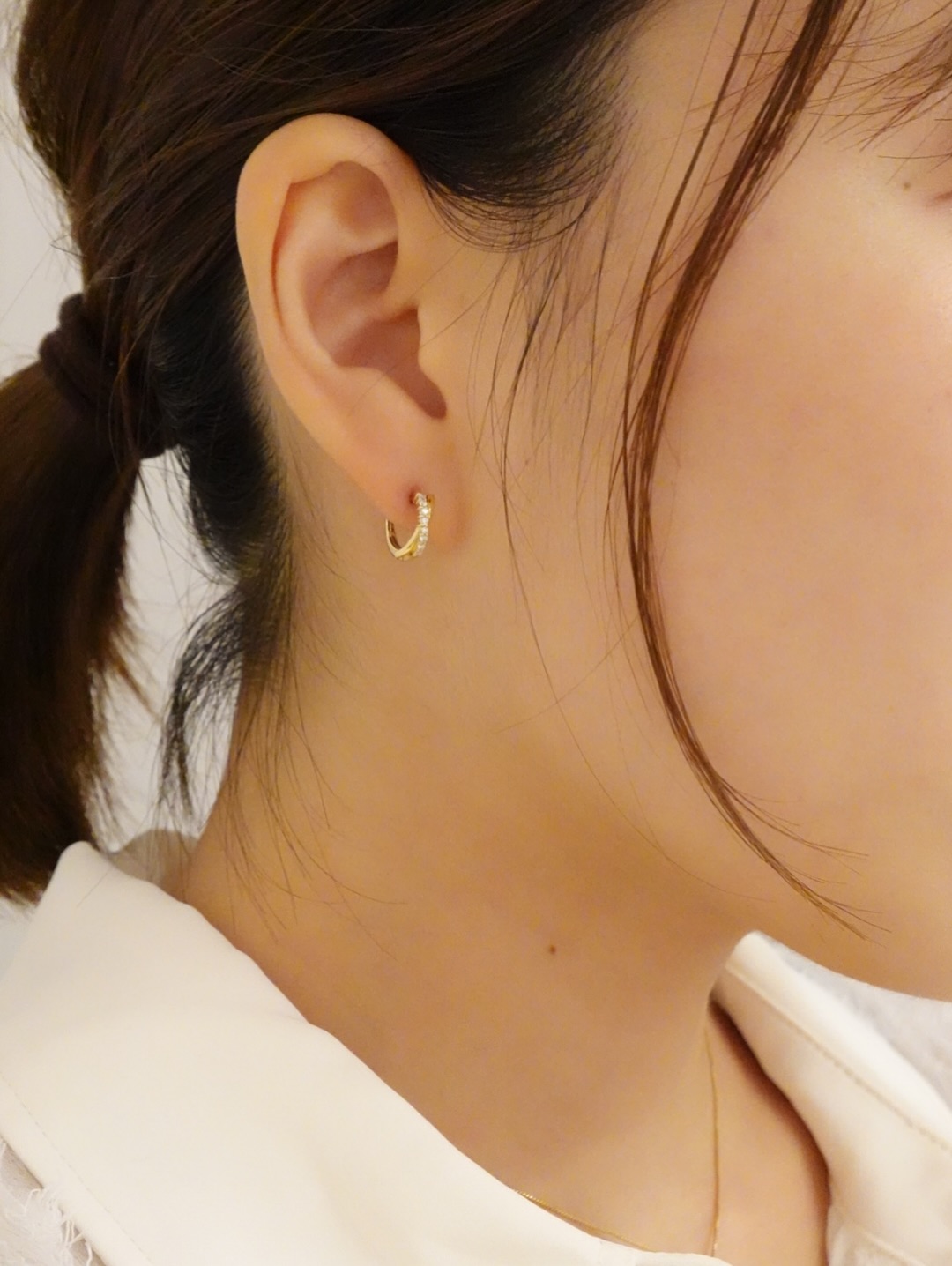 ダイヤモンドの繊細な輝きが重なり、耳元を上品に彩る