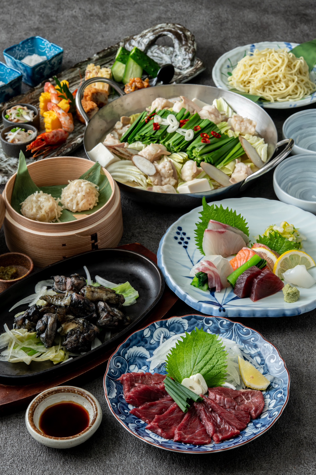 筑紫自慢の博多もつ味噌鍋がメインの九州ええとこどりの豪華コース。