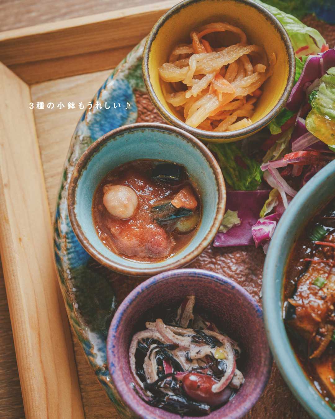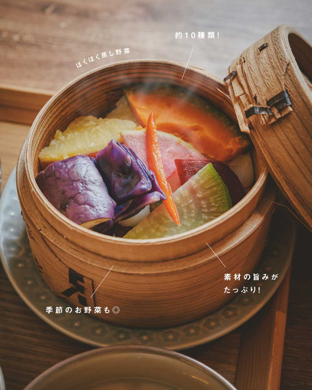 季節の蒸し野菜や3種の野菜小鉢、